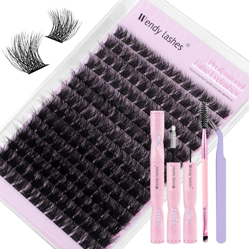 CORUSCATE Cluster Lashes Kit Long 14-20mm Eyelashes Individual Kit 80D-150D Thick Lashes Individual Cluster Russian Strip Lash D Curl DIY Lash Extension 284pcs with Lash Bond and Seal Tweezers