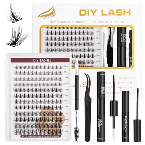 Lash Clusters Kit 280Pcs,60D 80D Eyelash Extension Kit,Lash Bond and Seal Waterproof,Lash Remover for Individual Cluster Lashes Kit,Lash Applicator To