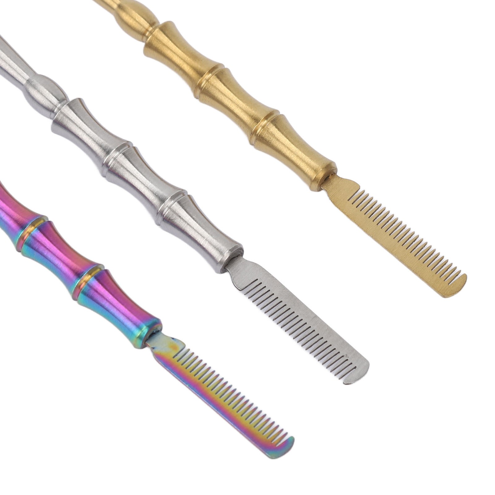 5pcs Curve Handle Lash Comb Stainless Steel Folding Eyelash Teeth Comb Tool F