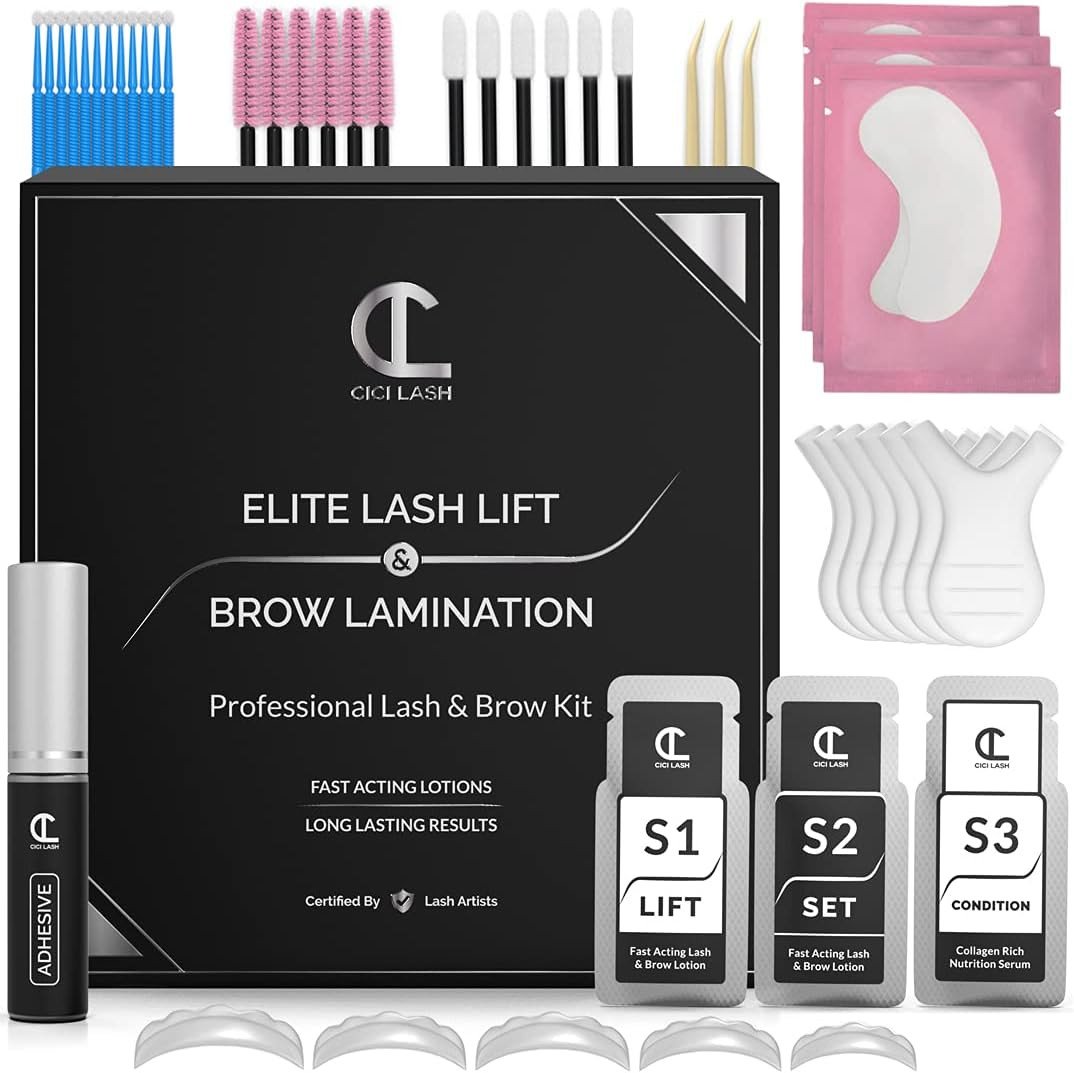 Lash Lift and Tint Kit with Keratin Conditioning by CICI | Instant Professional Perming, Lifting & Tinting for Eyelashes | Black Color Dye | Long-Lasting Salon Results At Home | DIY Tools and Supplies