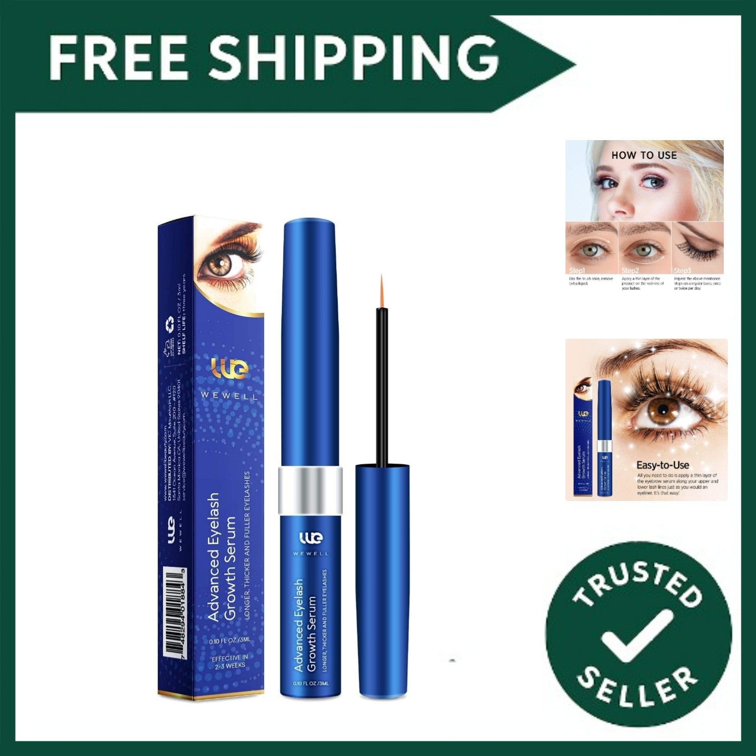Wewell Eyelash Growth Serum, Thicker Lashes, 3 ML (Peacock Blue)