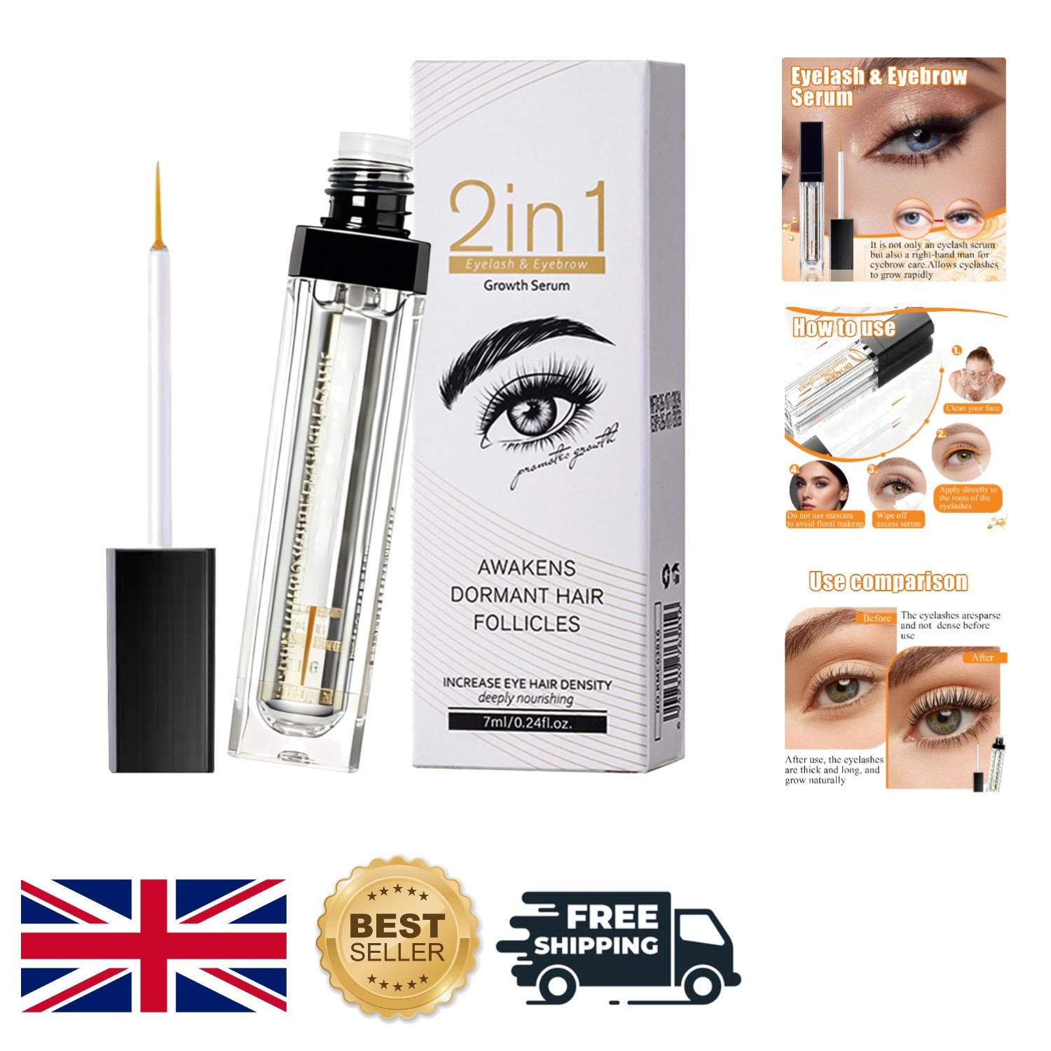7ml Brow & Lash Serum – Quick-Drying Enhancer for Fuller-Looking Lashes