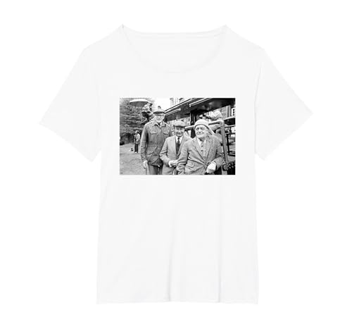 Last of The Summer Wine Actors On Set Foggy Cleggy & Compo T-Shirt, Women's Plus, White, 1X