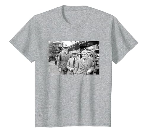 Last of The Summer Wine Actors On Set Foggy Cleggy & Compo T-Shirt, Youth, Heather Grey, Large