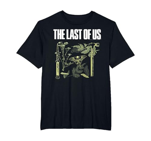 The Last of Us Plants and Weapons Illustration Video Game T-Shirt, Men, Black, Small