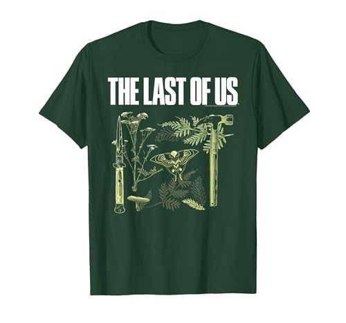 The Last of Us Plants and Weapons Illustration Video Game T-Shirt, Men, Dark Green, Small