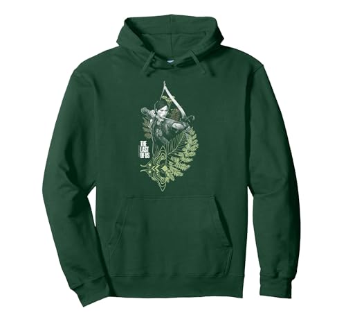 The Last of Us Ellie with Moth and Leaves Video Game Pullover Hoodie, Adult Unisex, Dark Green, Small