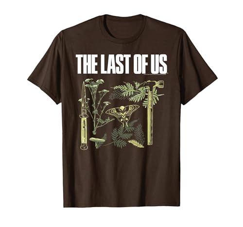 The Last of Us Plants and Weapons Illustration Video Game T-Shirt, Men, Brown, Large
