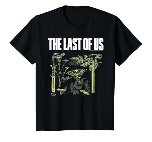 The Last of Us Plants and Weapons Illustration Video Game T-Shirt, Youth, Black, Small