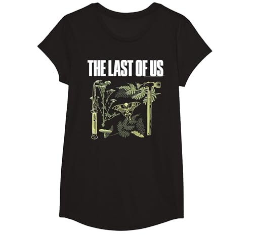 The Last of Us Plants and Weapons Illustration Video Game T-Shirt, Girls, Black, Small