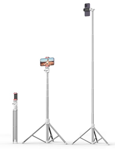 71'' Phone Tripod Stand, Extendable Reinforced Aluminum Phone Stand with Wireless Remote, Stable Cellphone Tripod Compatible with iPhone 14/13/12 Galaxy S23/S22 Huawei (White)