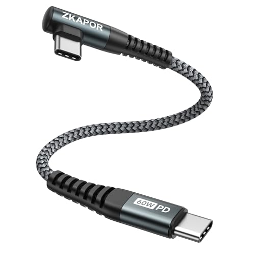 ZKAPOR USB C to USB C Cable Short 30CM, Type C to Type C Cable Right Angle 60W Type C Charger Lead Fast Charging for iPhone 15/15 Pro Max, Samsung Galaxy S23, Pad Pro, Air, Huawei P40 /Mate 60, Pixel