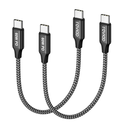 RAVIAD USB C to USB C Cable Short, [2Pack 30CM] 60W 20V/3A PD Fast Charging Data Cable Lead Compatible with iPhone 16 15, Samsung Galaxy S23/S22/S21, Huawei Mate 60 Pro, MacBook Pro/Air, Pixel - Black