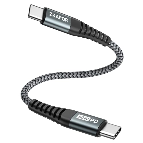 ZKAPOR USB C to USB C Cable Short 30CM, Type C to Type C Cable 60W Type C Charger Lead Fast Charging for iPhone 15/15 Pro Max, Samsung Galaxy S23 /S22, Pad Pro, Air, Huawei P40 /Mate 60, Pixel -Grey