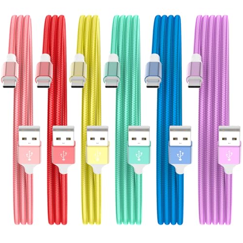 HKYUSHINE USB C Charger Cable, 6Pack 3/3/3/6/6/10FT 3.1A Type C Charger Fast Charging Braided USB A to USB C Cable for iPhone 16 15 Pro Max, Samsung S23 S22 S21, Pixel 6/7/8, Huawei, PS5, Switch