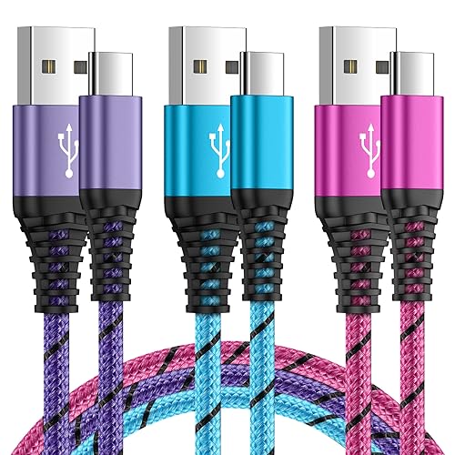 USB C Charger Cable【3PACK 6FT】 Type C Cable Fast Charging, USB A to USB-C Phone Charger Cable USBC for iPhone 17/16/15 Pro Samsung Galaxy S24/S23/S22/S21Huawei P9 Pixel 7/6 iPad Switch PS5 etc.