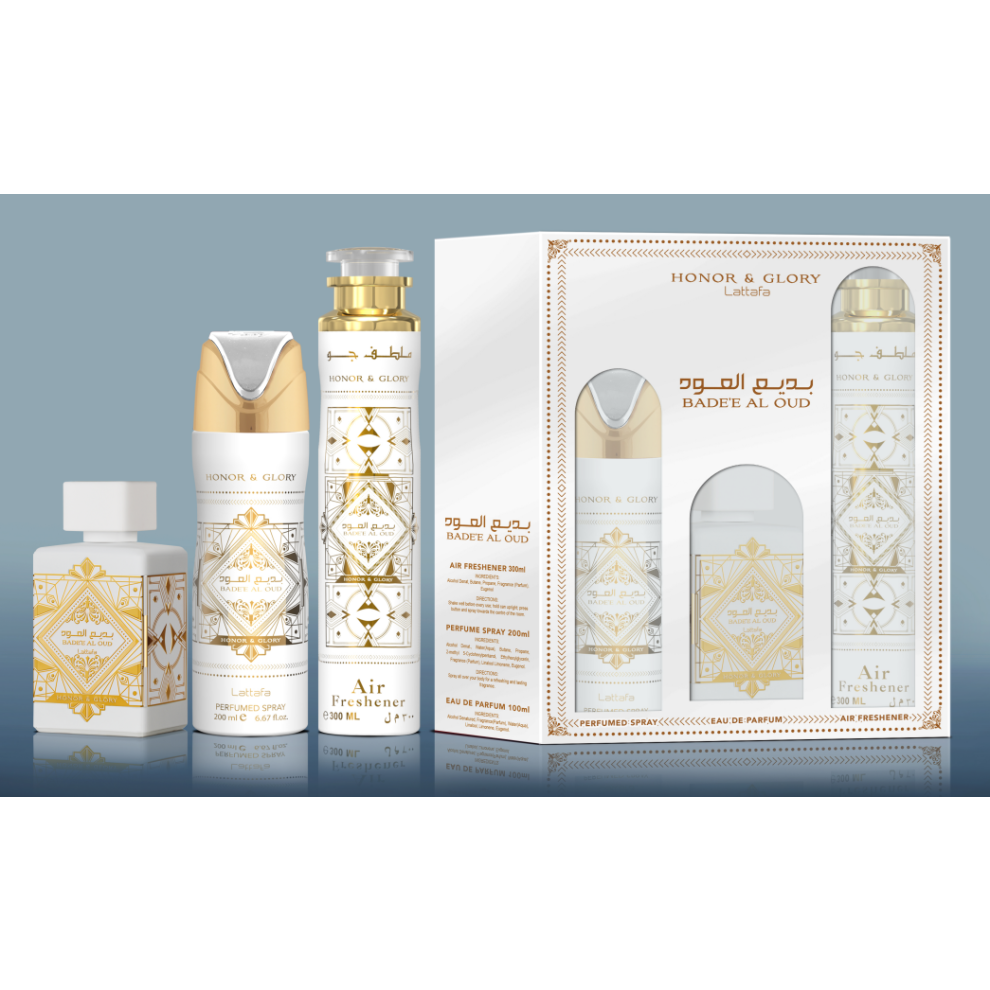 3 Piece Fragrance Gift Set- Badee Al Oud Honor and Glory by Lattafa