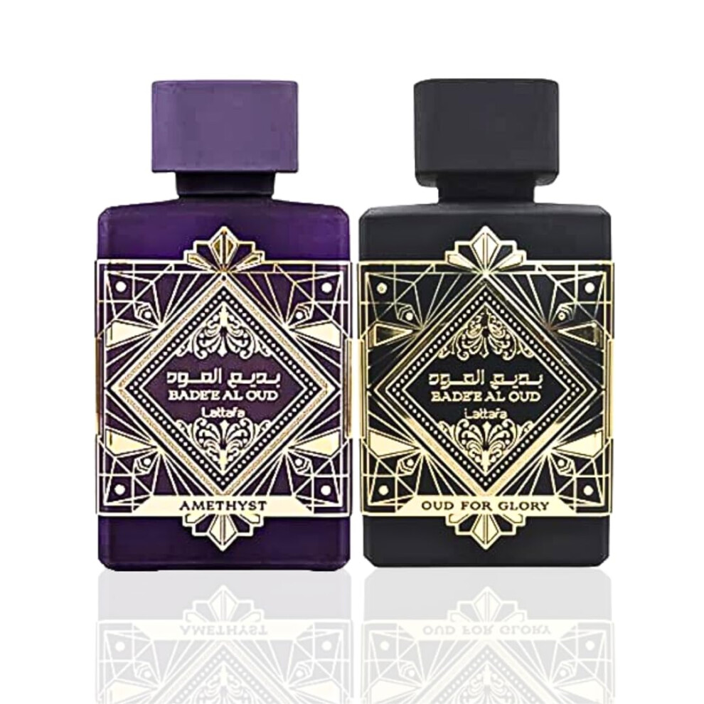 Lattafa Perfumes Bade'e Al Oud 2 Piece Gift Set for Unisex (3.4 Ounce Oud for Glory Eau de Parfum Spray + 3.4 Ounce Amethyst Eau de Parfum Spray)
