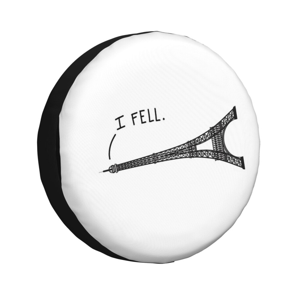 (I Fell Tower - Funny French Pun_4633) Spare Tire Cover for RV Trailer, Waterproof Wheel Covers Protectors Camper Fit for Jeep Wrangler Rv SUV Van Tru