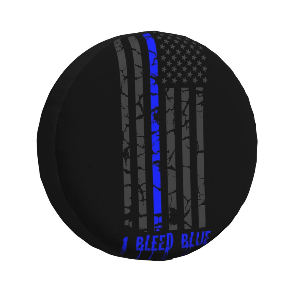 (Thin Blue Line - I Bleed Blue_4891) Spare Tire Cover for RV Trailer, Waterproof Wheel Covers Protectors Camper Fit for Jeep Wrangler Rv SUV Van Truck