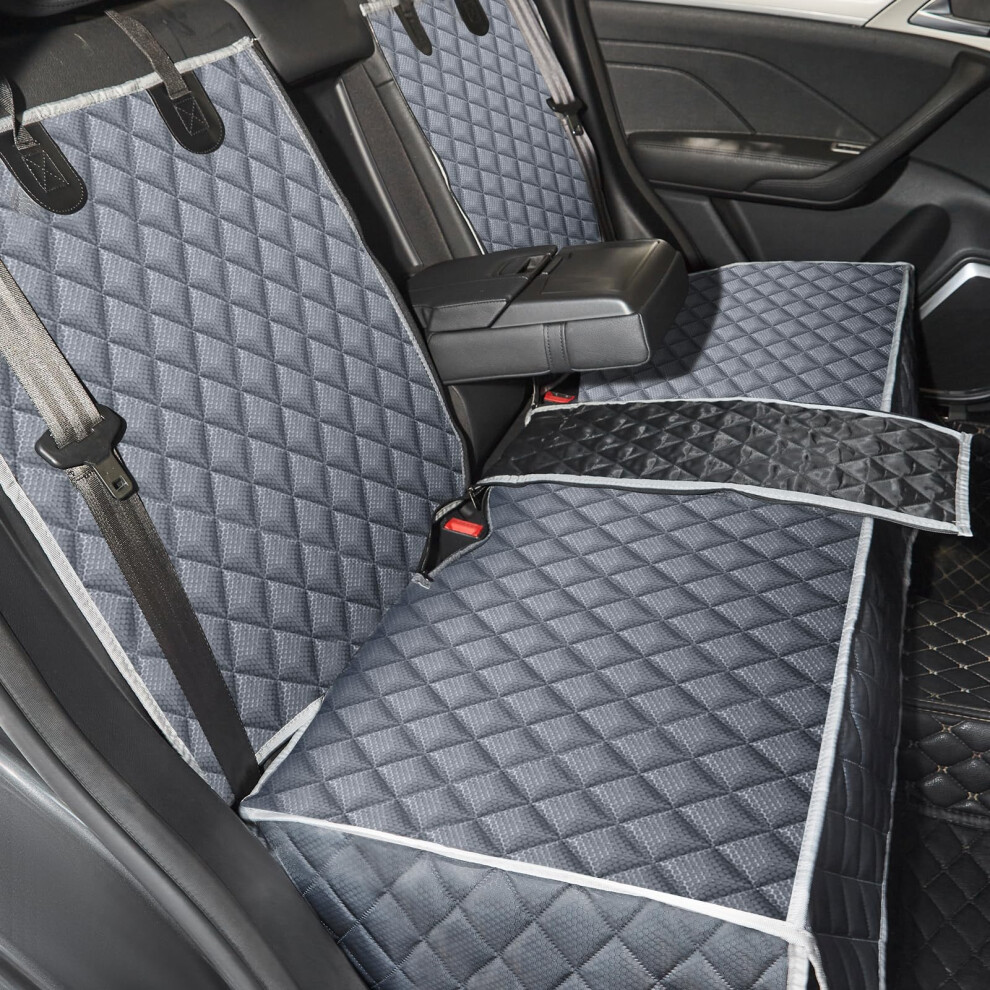 ANOSOSPECIAL Grey Dog Car Seat Cover for Back Seat Non-Stick Fur Pet-Friendly and Waterproof - Universal Fit Interior Protector for Auto Van SUV - I
