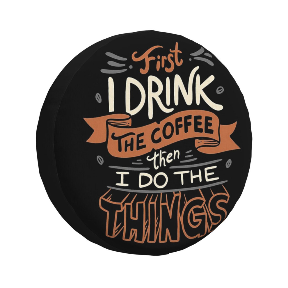(First I Drink The Coffee_1832) Spare Tire Cover for RV Trailer, Waterproof Wheel Covers Protectors Camper Fit for Jeep Wrangler Rv SUV Van Truck Trav