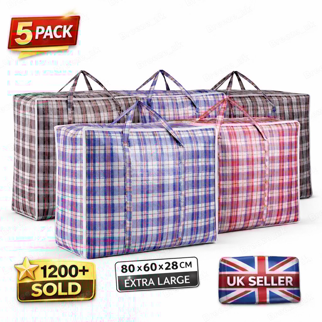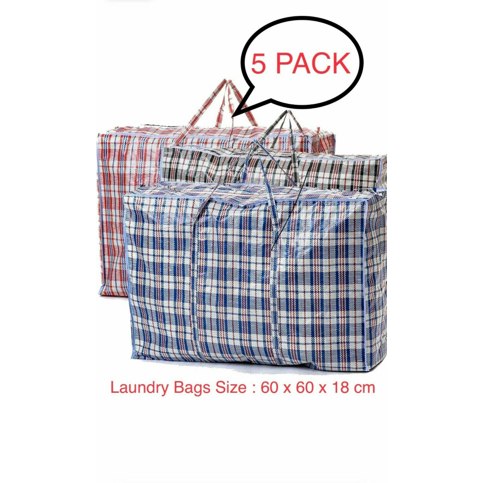 5x JUMBO LAUNDRY BAGS Zipped Reusable Large Strong Shopping Storage Bag Moving
