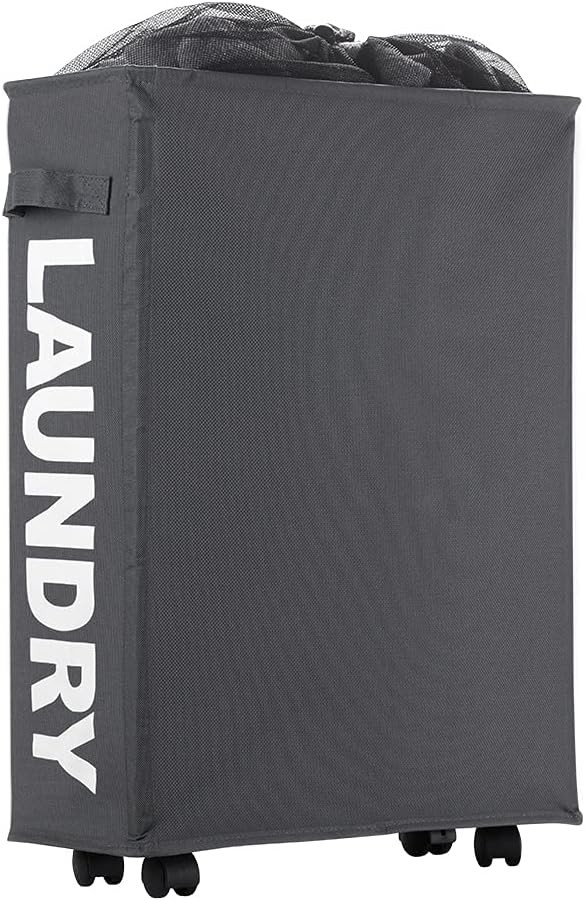 IHOMAGIC Foldable Laundry Basket On Wheels, Slim-line Laundry Bins with handles