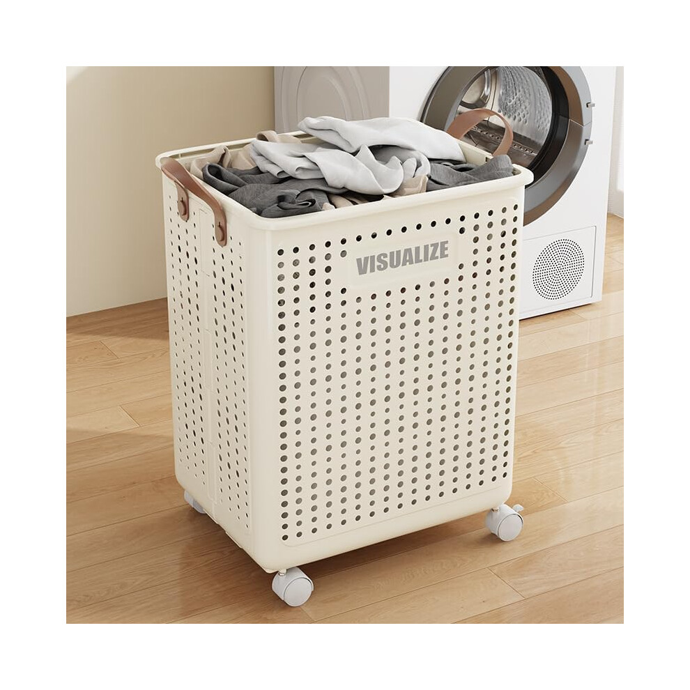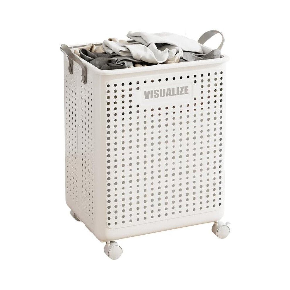 Laundry Basket with Wheels, Large Rolling Hamper Dirty Clothes Basket on Wheels