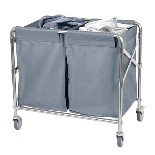 Nisorpa 2 Section Divided Laundry Trolley Foldable Laundry Basket 300L Commercial Laundry Sorter on Wheels Heavy Duty Laundry Hamper Collapsible Laundry Cart Large Folding Laundry Trolley