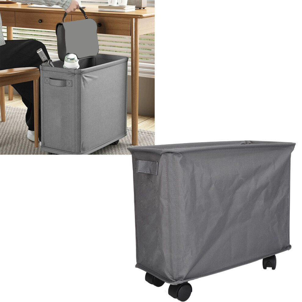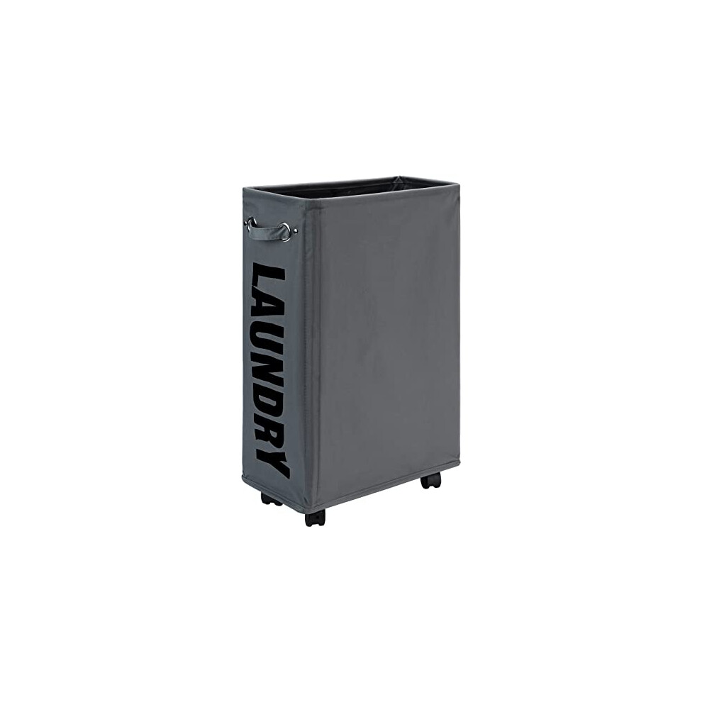Dark Gray Slim Collapsible Laundry Basket on Wheels 40x20x35cm