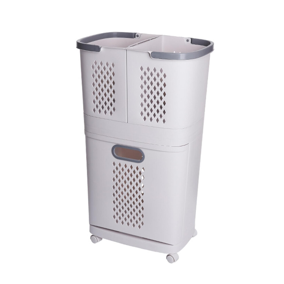 Laundry Basket on Wheels with 3 Section Detachable Hamper, PP Material, Bottom Opening Design for Kitchen, Bedroom, Bathroom