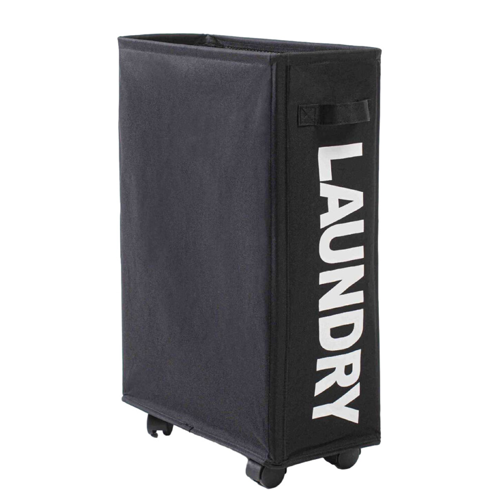 Slim Laundry Basket on Wheels Collapsible Rolling Storage Bins (Black)