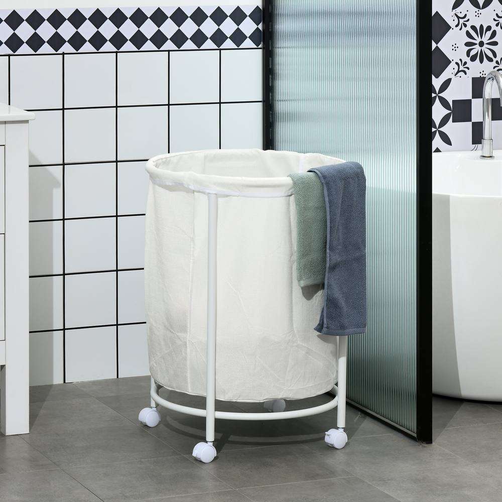 Homcom 100l Rolling Laundry Basket On Wheels, 50cm Round Laundry Hamper With Removable Bag And Steel Frame, Bathroom, Laundry Room, Cream White