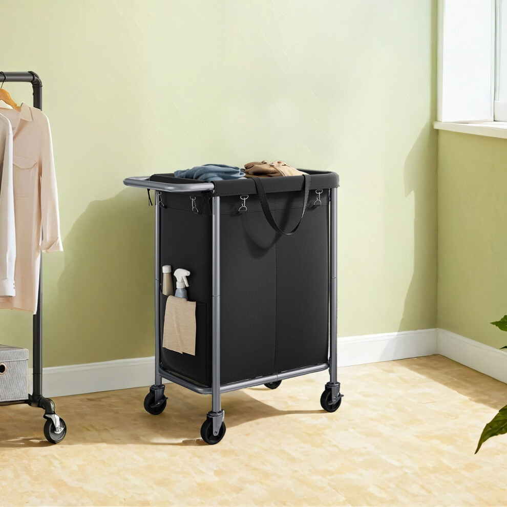 Laundry Basket on Wheels, 2-Compartment Laundry Hamper, 37 Gallons (140L), Removable Liner, Steel Frame with Handle