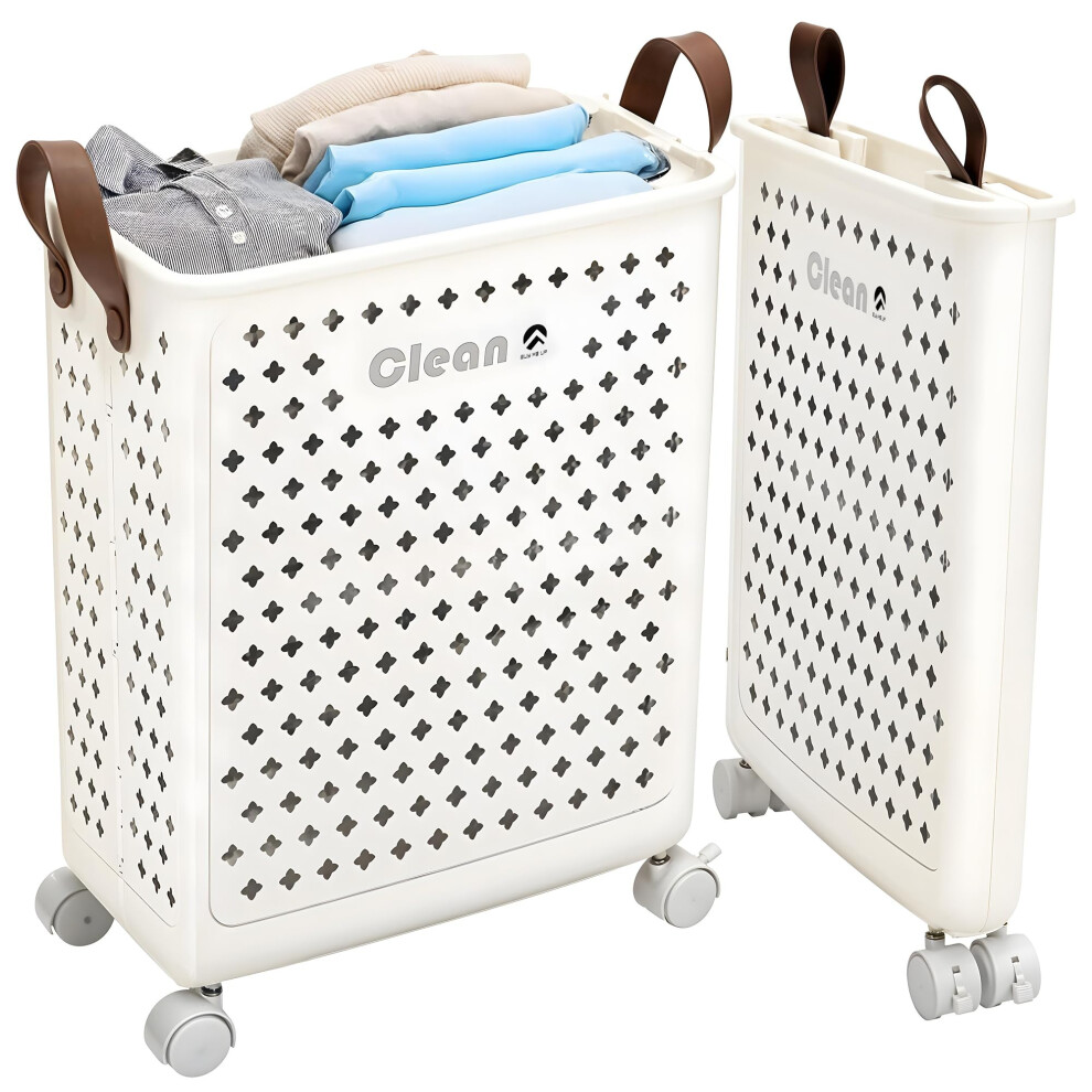 Versatile Laundry Basket on Wheels, Slim Laundry Basket with Collapsible Laundry Hamper Design, Easy to Store and Move, Stronger & Safer Rolling Wheel