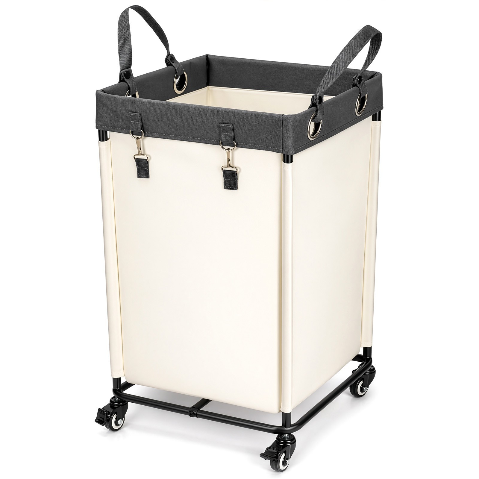 HOMCOM 100L Rolling Laundry Basket on Wheels with Removable Bag in Cream