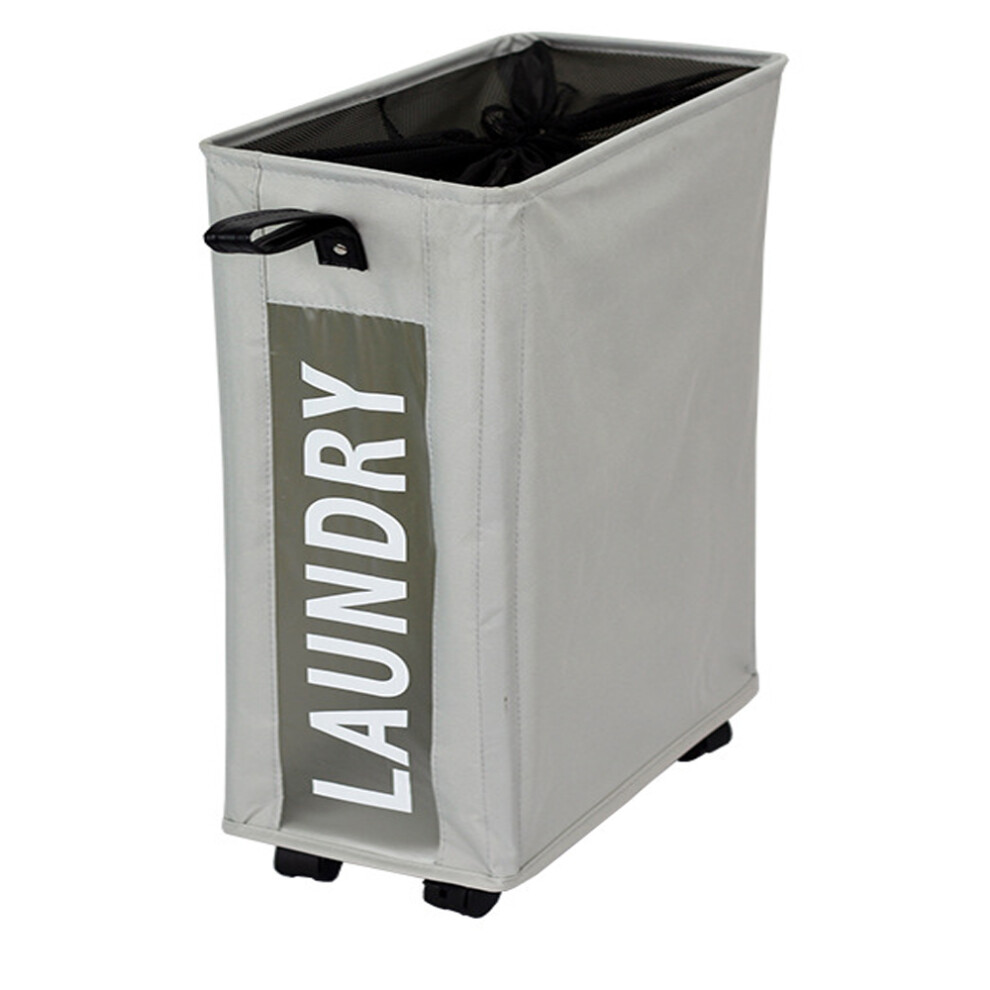 Slim Laundry Basket Grey With Handle on Wheels Washing Bin Storage Trolley