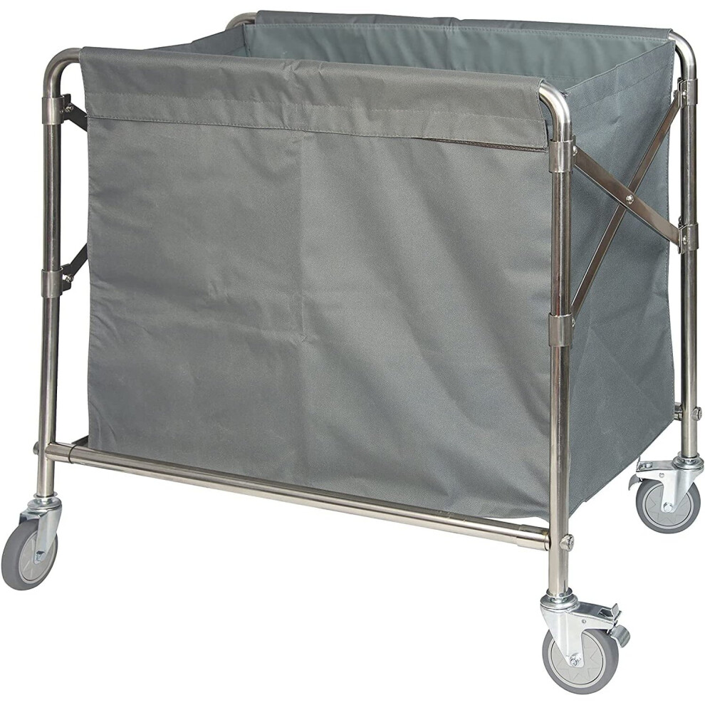 Suuiwau Laundry basket with wheels Stainless steel Laundry trolley Commercial laundry organiser Folding Laundry basket on wheels with a load capacity of 100 kg for home, hotel, 87 x 52 x 78 cm
