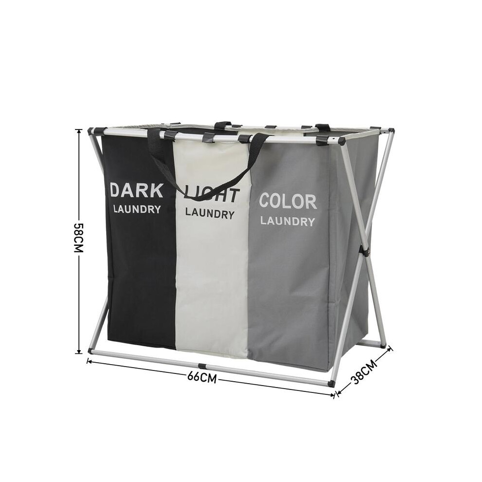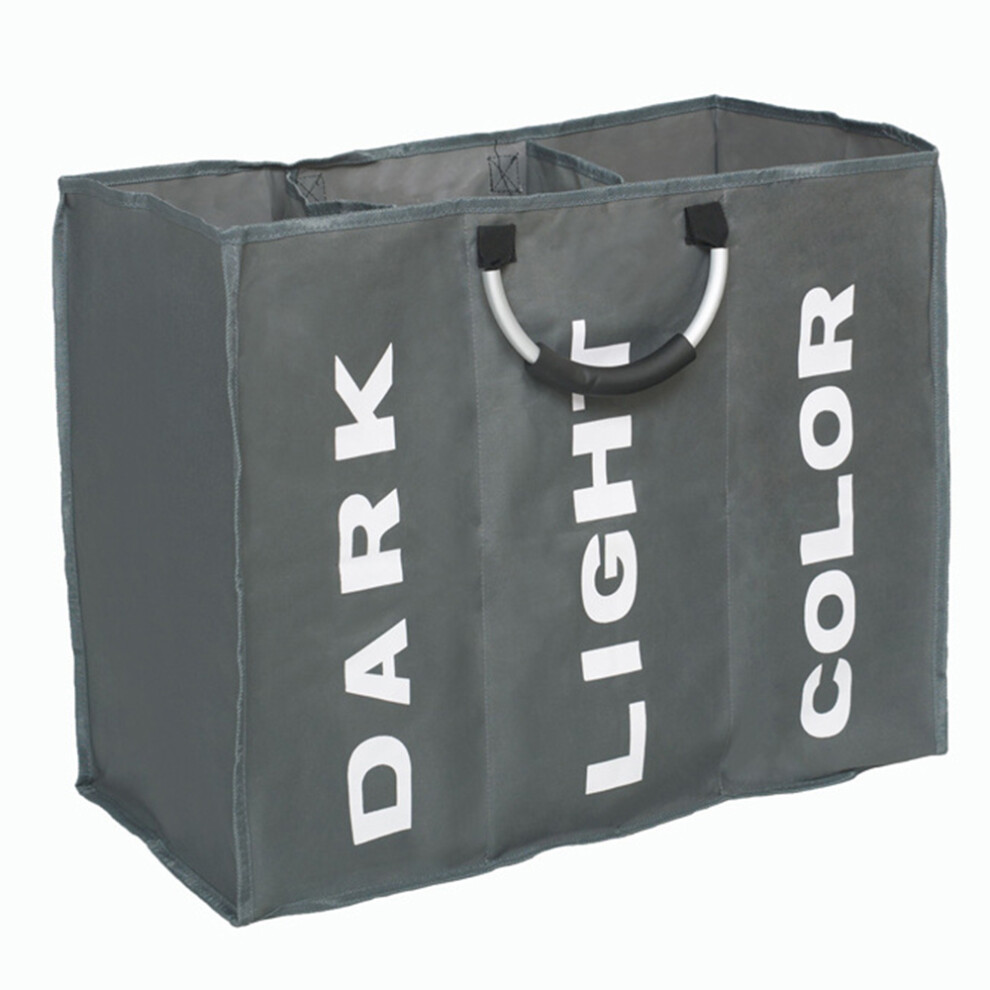 Laundry Basket 3 Compartments Large Foldable Bins Collapsible Hamper Aluminum Br
