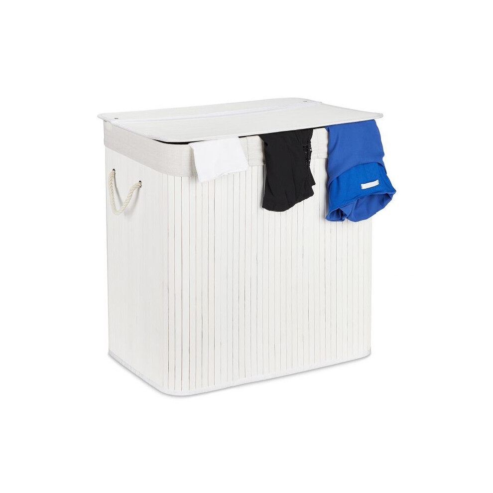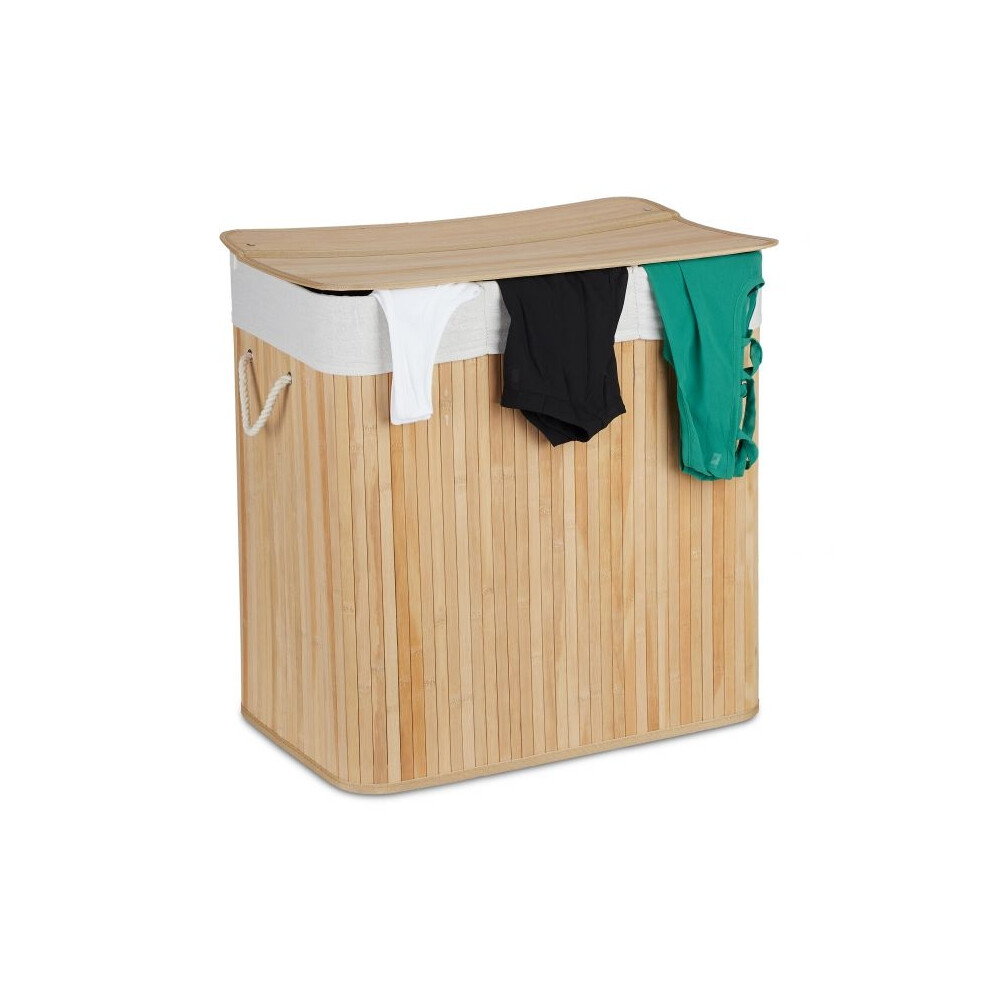 Relaxdays Laundry Basket with Lid, 3 Compartments, Bamboo, Foldable, 105L, 63x52x32 cm, Natural Finish