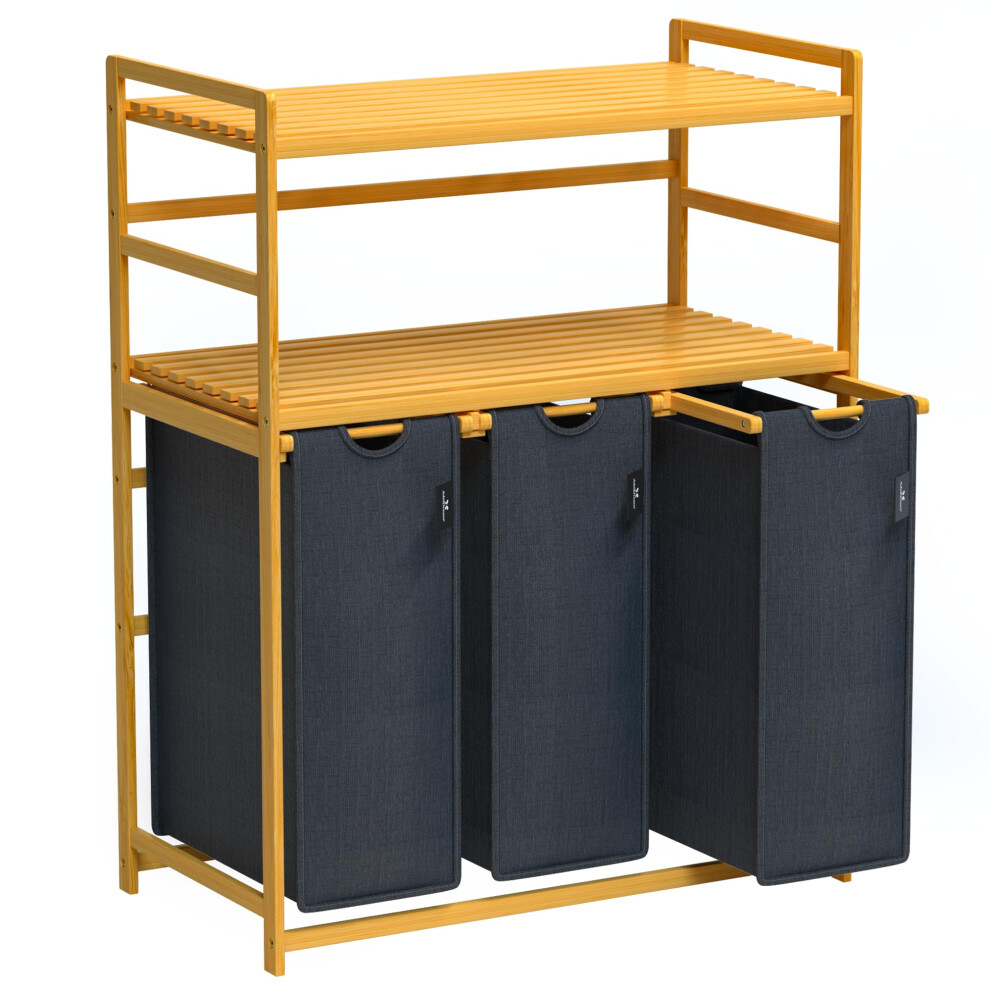 AdelDream Laundry Basket 150L 3 Compartments 2 Shelves Extendable And Removable Laundry Bag Laundry Basket Bamboo Frame Bamboo Laundry Sorter Gray