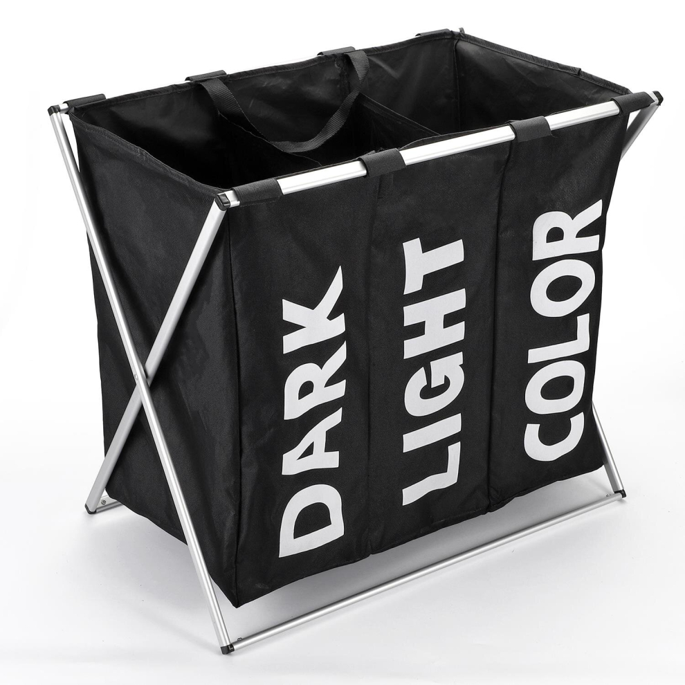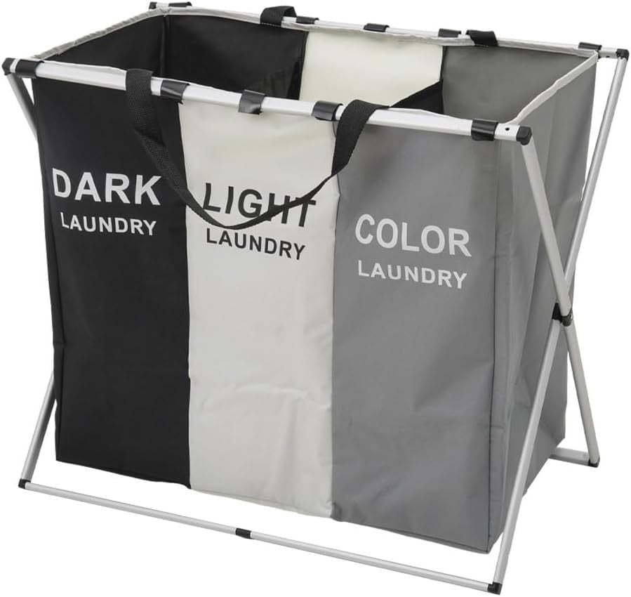 Large Foldable Laundry Basket with 3 Compartments, Stainless Steel