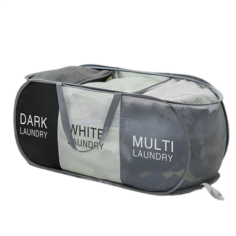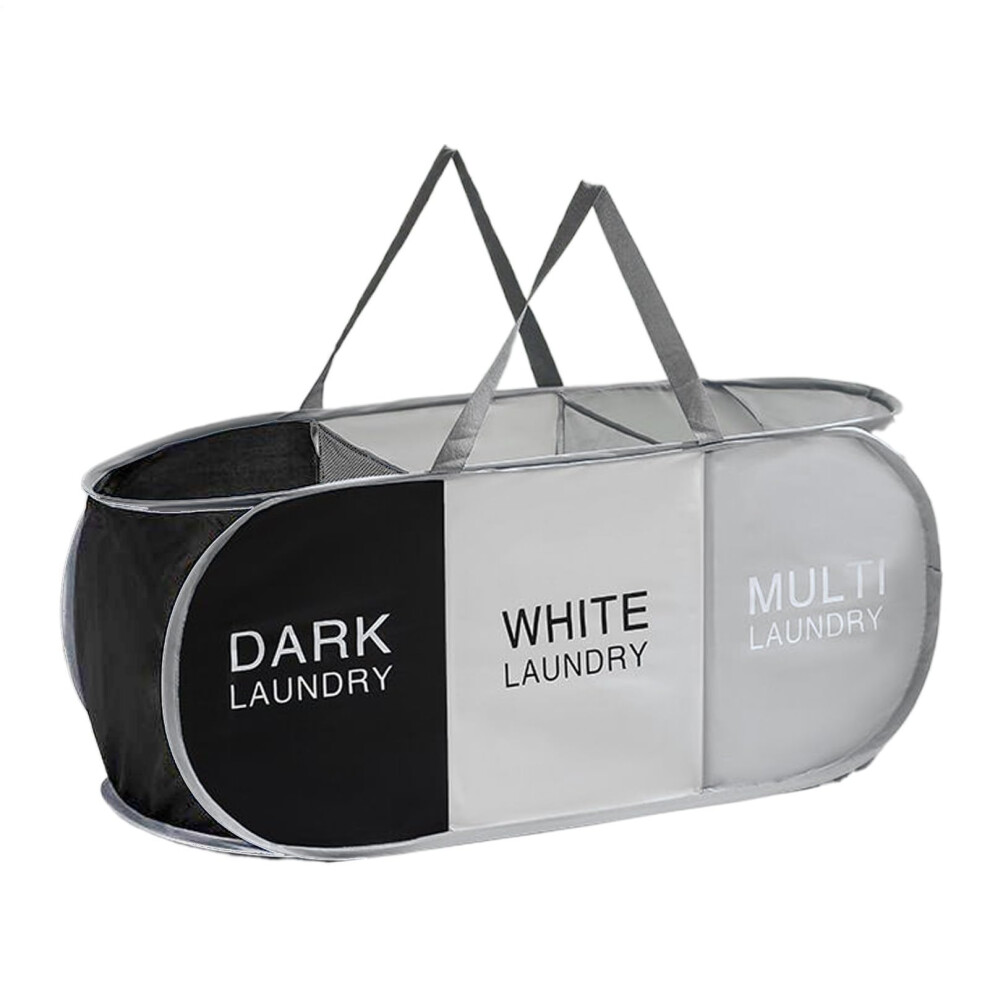Foldable Collapsible Laundry Bag Basket with 3 Compartments & Stand