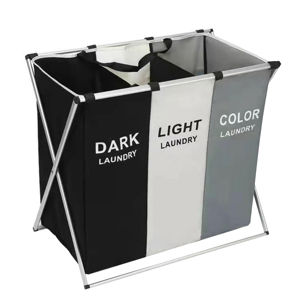 (Default) Foldable Laundry Basket 3 compartments Large Laundry Bins Collapsible Laundry Hamper with Aluminum Bracket and Carry Handles for Bedrooms Ba