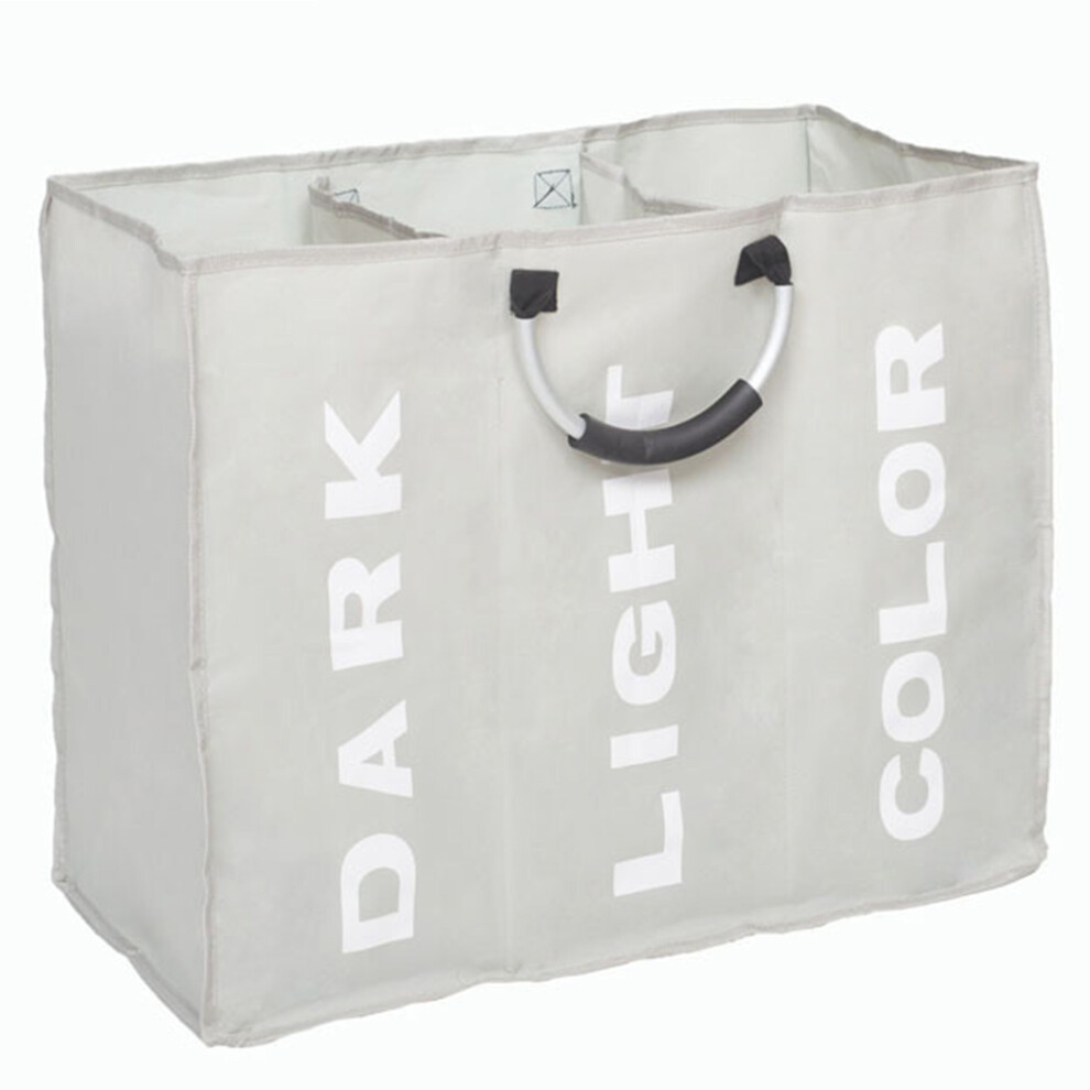 Laundry Basket with 3 Compartments for Dark, Light and Coloured Clothes, Aluminium Frame Organizer