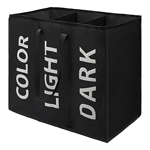 Maxsilan Large Laundry Basket with 3 compartments, collapisable Laundry Bag, Foldable Laundry Hamper, Folding Washing Storage Bin, Black