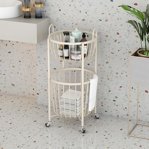 MDKSOUITY Rolling Storage Cart, Multifunction Utility Rolling Storage Organizer, Folding Laundry Basket with 4 Wheels and Brakes, Large Capacity Bathroom Organizer for Kitchen Living Room Be (2 Tier)