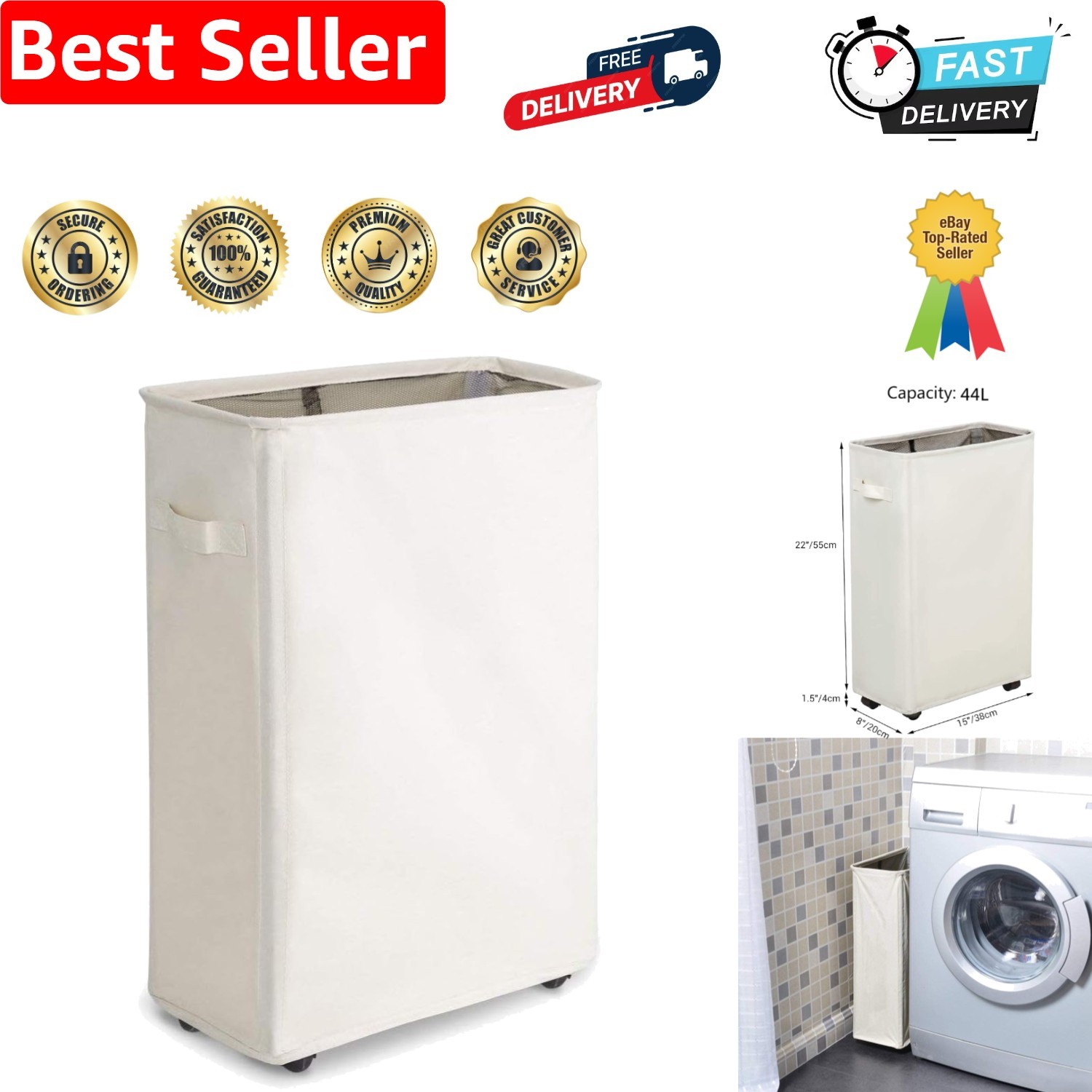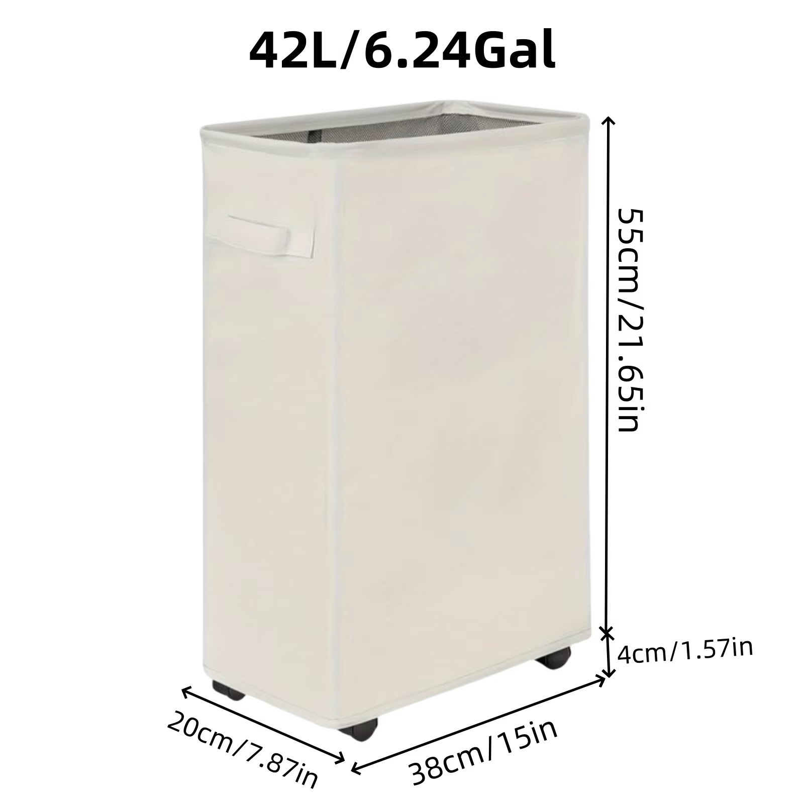 Slim Laundry Basket with Wheels, Folding 39 cm x 20 x 56 cm, Beige