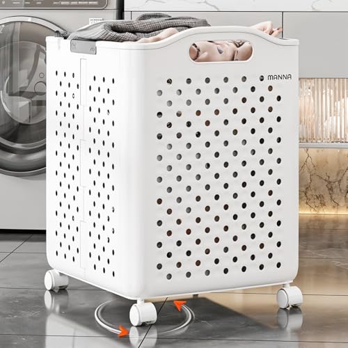 50L Laundry Basket Plastic Washing Baskets for Laundry Rolling Laundry Hamper Foldable Laundry Basket with Handle and Wheels Clothes Storage for Laundry Room,Bathroom,Bedroom,Dorm